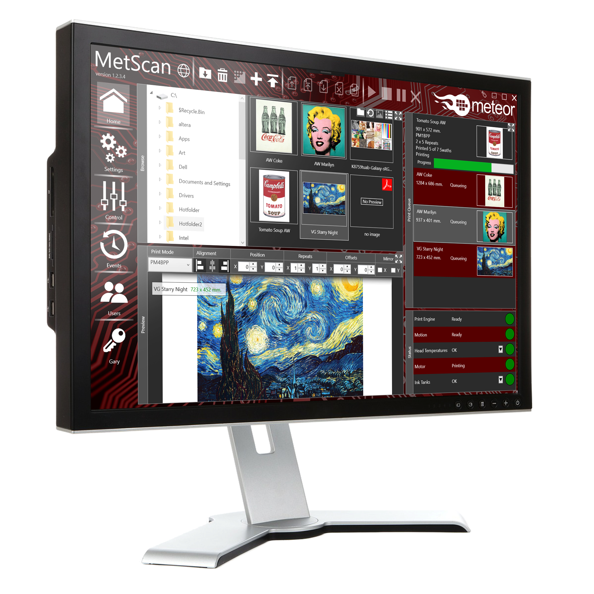 MetScan2 is a ready-to-use Digital Front End for scanning applications. Seamlessly integrated with Meteor electronics, MetScan2 is suitable for both prototype and production environments. With a simple yet comprehensive graphical user interface, MetScan2 provides the ability to run print jobs, conduct maintenance and manage access to detailed printer configuration settings.
